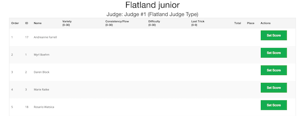 Each Judge will be able to enter results for all competitors.